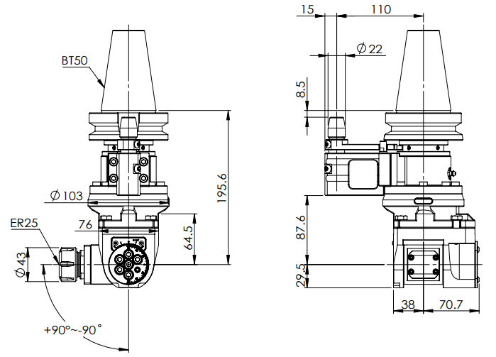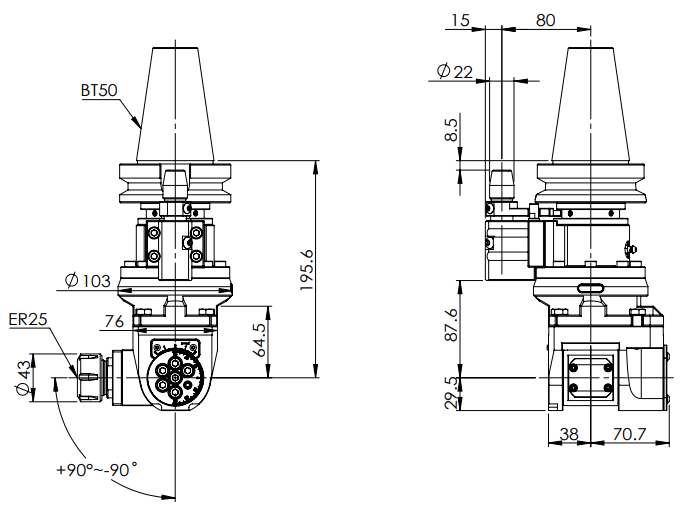 ◎?BT50-ER25 Universal Angle Head (AHG Type)