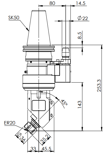 ◎?SK50-ER20 45° Angle Head (AHD Type)