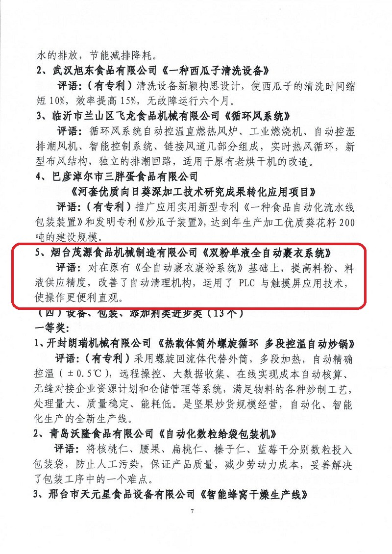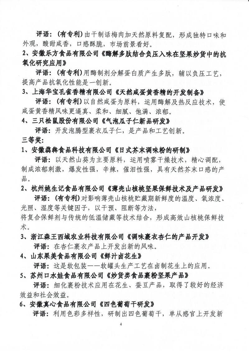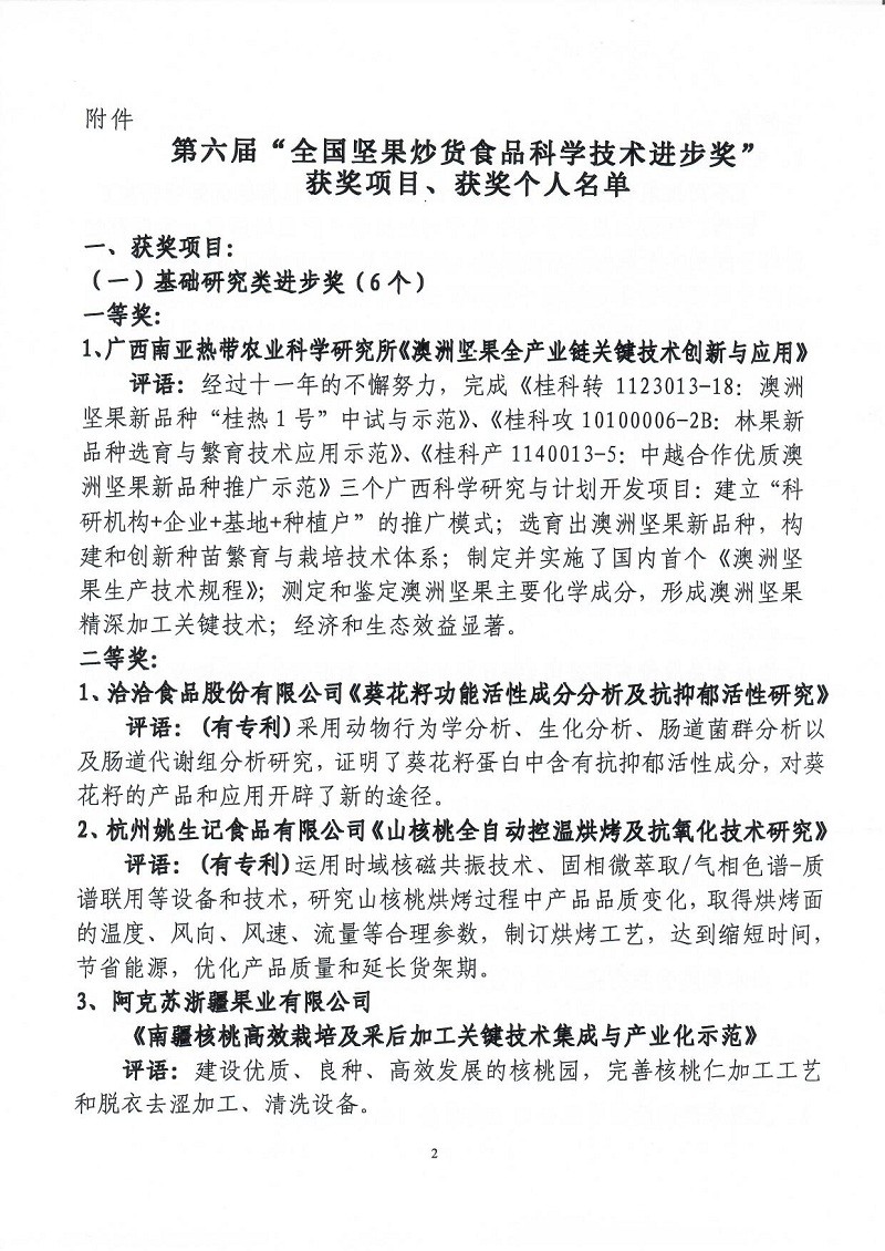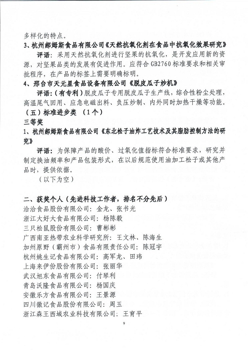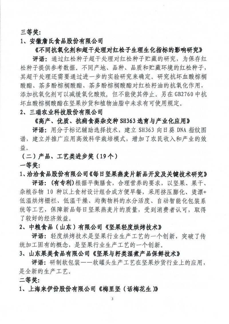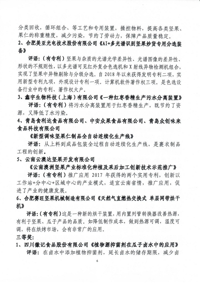 關(guān)于表彰第六屆(2018-2019年度)全國堅(jiān)果炒貨食品行業(yè)科學(xué)技術(shù)進(jìn)步獎(jiǎng)的通知