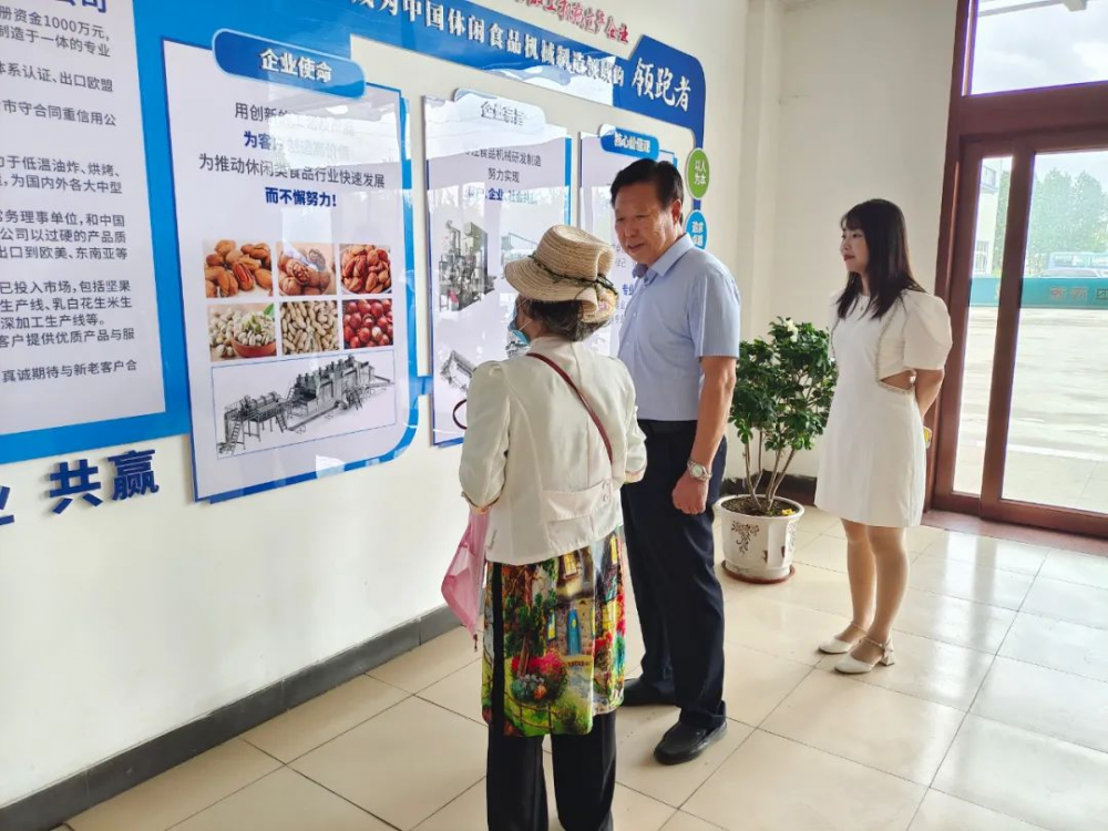 近日,中國食品工業(yè)協(xié)會堅果果干專業(yè)委員會常務副會長翁洋洋率領(lǐng)協(xié)會工作人員一行,蒞臨我司進行考察調(diào)研,并就相關(guān)設備技術(shù)進行指導工作。